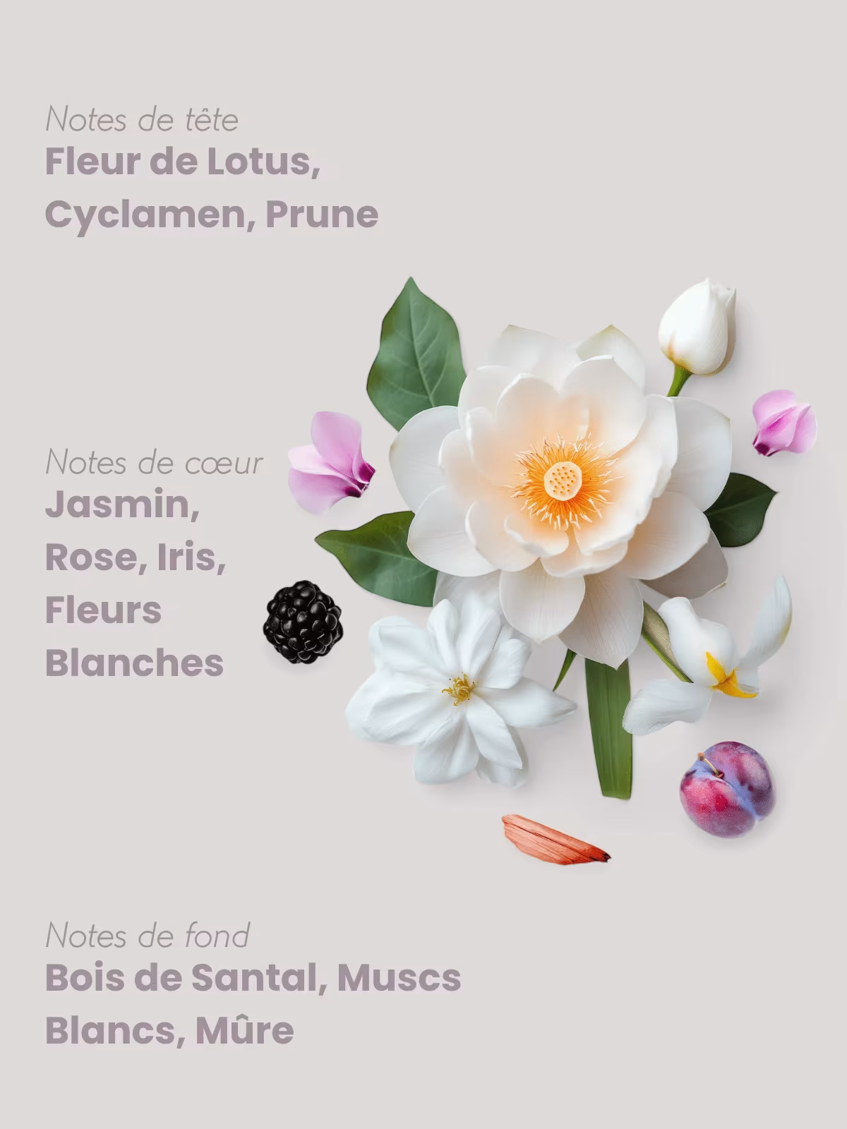 • Tête : Fleur de Lotus, Cyclamen, Prune